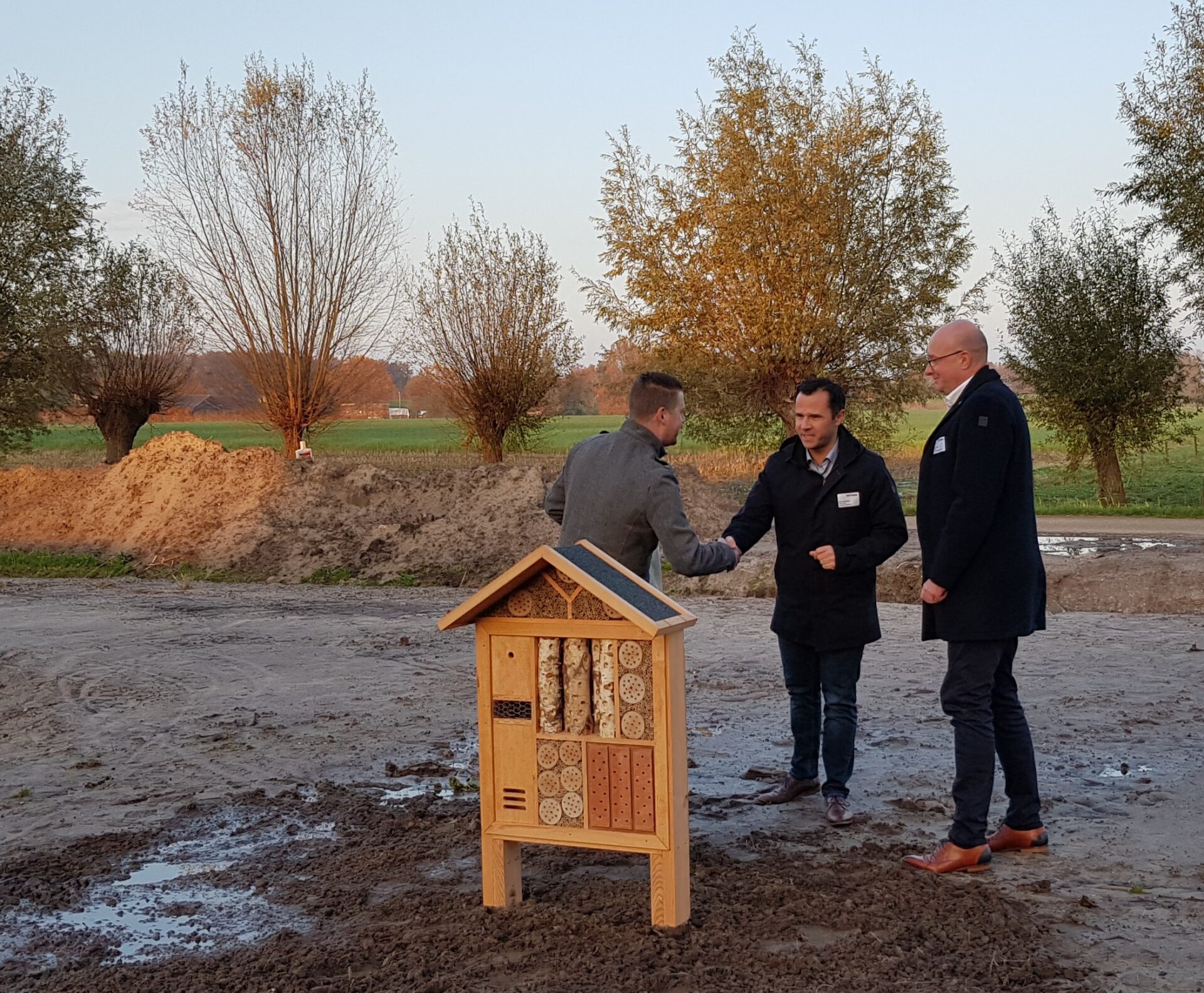 Ter afronding van het nieuwbouwplan hebben de ontwikkelaars drie insectenhotels ter beschikking gesteld. Deze middag zijn ze in het openbaar gebied van de ruim opgezette wijk geplaatst. Insecten zijn belangrijk voor de biodiversiteit. Samen met de natuurvriendelijke wadi’s, planten, de andere dieren, het bodemleven én de grond zijn ze onderdeel van alles wat leeft.