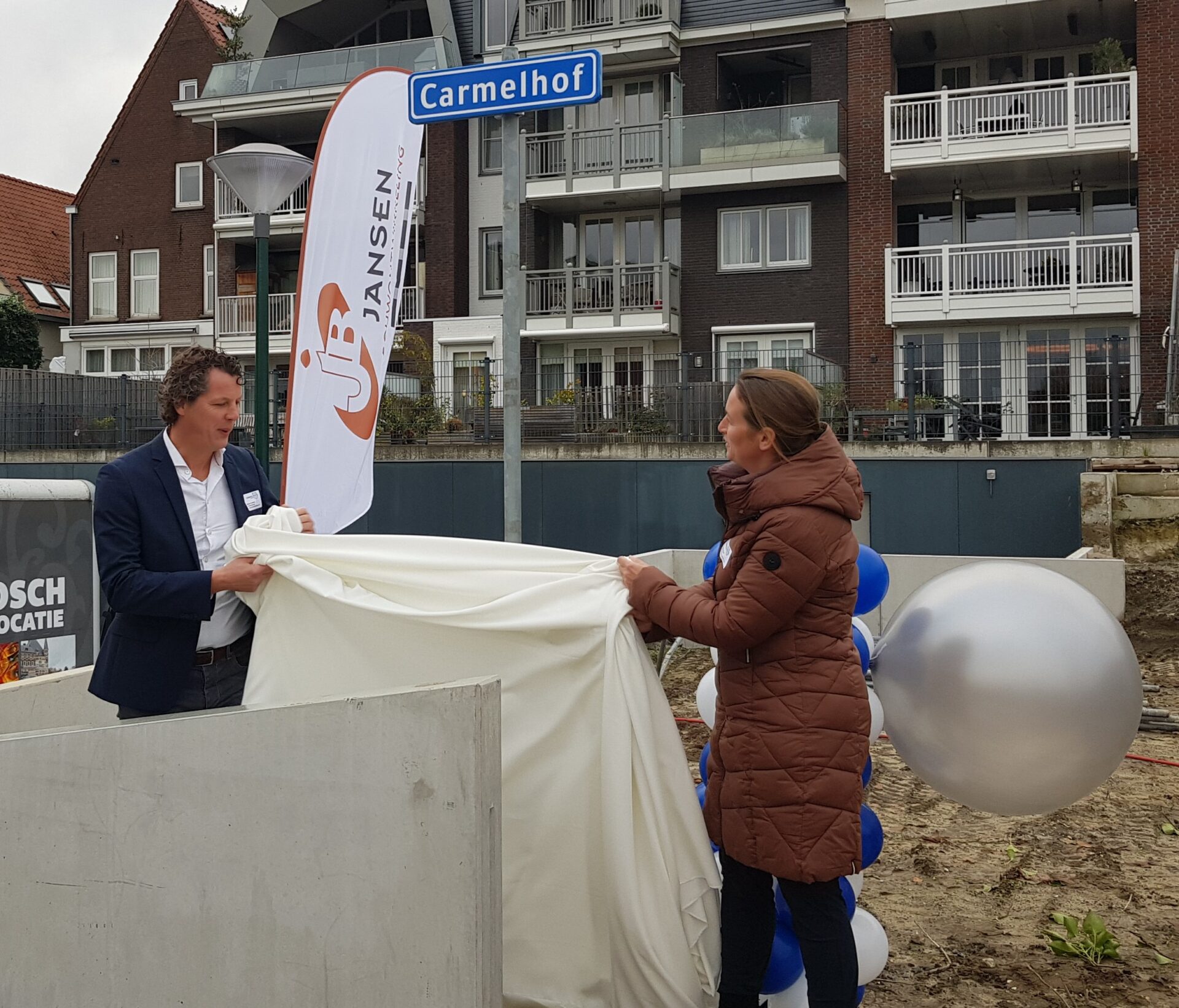 In het centrum van Boxmeer is op donderdag 23 november 2023 de bouw van de 19 woningen van Carmelveste Boxmeer gestart. In een mix van historie, groen en moderne dagelijkse voorzieningen komen 2 twee-onder-één-kapwoningen, 4 hoek- en tussenwoningen en 13 levensloopbestendige woningen. De wethouder wonen van gemeente Land van Cuijk gaf het startsein voor de bouw door bij het Titus Brandsmaplein het nieuwe straatnaambord ‘Carmelhof’ te onthullen. In het bijzijn van onder meer wethouder Bouke de Bruin en de toekomstige bewoners werd de bouw van de woningen gevierd. Het was een gezellige middag!
