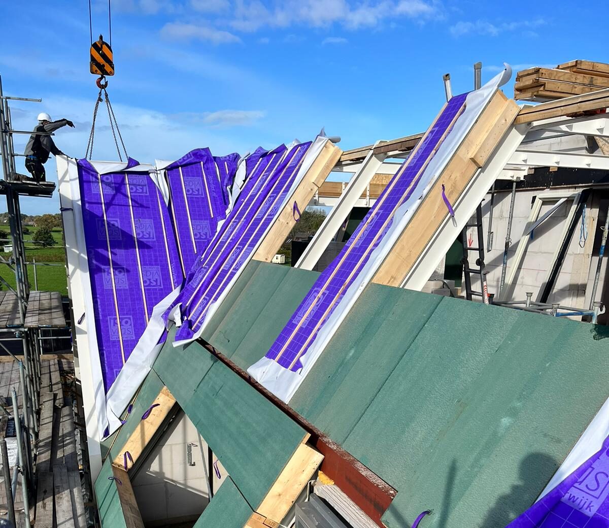 Het is volop herfst en de bouw van de appartementen van Achter het Vrijthof in Vierlingsbeek gaat onverminderd door. Medio november 2023 heeft Bouwbedrijf Gebroeders van Herpen het hoogste punt bereikt! Ook zijn bij de penthouses de grote, statige, driehoekige kozijnen geplaatst. Momenteel werkt de aannemer aan het platte dak van het gebouw en de komende weken worden de daken verder afgewerkt. Volgens de prognose is het dak nog voor de kerstvakantie waterdicht.
