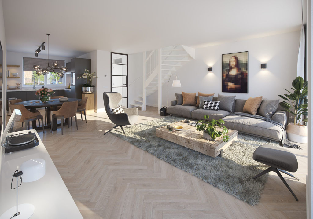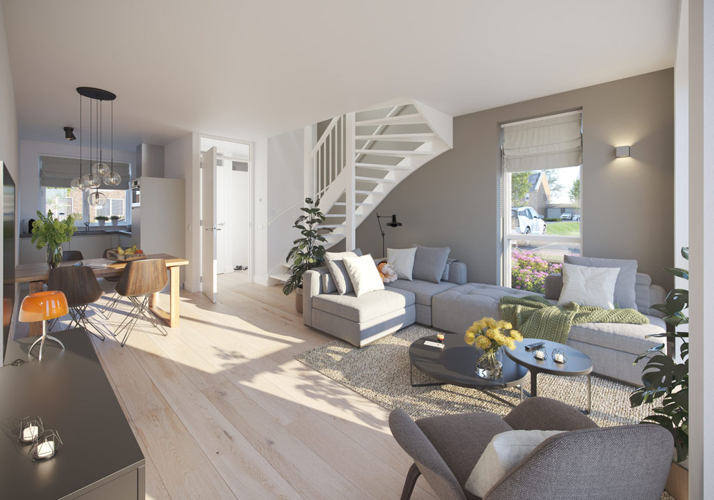 De nieuwe groene woonhof aan het Hazenveld bestaat uit 4 starterstussenwoningen, 2 hoekwoningen (1 voor starters), 8 tweekappers en 4 ruime bouwkavels voor vrijstaande woningen. De tweekappers zijn er in twee afmetingen L en XL. De architectuur? Modern eigentijds. Zelfs een tikkeltje eigenwijs.